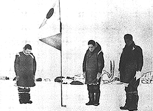 In reality their efforts were to become anything but a "Dash" as on the very first day a blizzard forced them to seek shelter after having covered a mere 13 kilometers. Nine days of struggle and 257 kilometers later, on January 28th, Shirase saw the senselessness of any further effort and made the decision to turn back. He and his men lined up before dawn at south latitude 80o 05', the furthest southern point they would achieve, and stood beneath the Japanese flag to salute the Emperor with a traditional Banzai ceremony. Burying a copper receptacle containing a record of their valiant efforts, the "Dash Patrol" returned to the drop-off point and again boarded the Kainan Maru for the long journey home to Japan, stopping off once again at Wellington. Shirase and his team returned home to Shibaura on June 20th, 1912, having undertaken an expedition of some 48,000 kilometers since leaving Japan. It must be noted, too, that this date is a mere one month short of Shirase's planned return date and shows how accurately he was able to plan the whole expedition. Although they had failed to reach the South Pole, as they had set out to do, they certainly managed to achieve all of their stated objectives from the time of their second sailing and were greeted by 50,000 well-wishers, in stark contrast to their departure from Japan which was only witnessed by a handful of students.